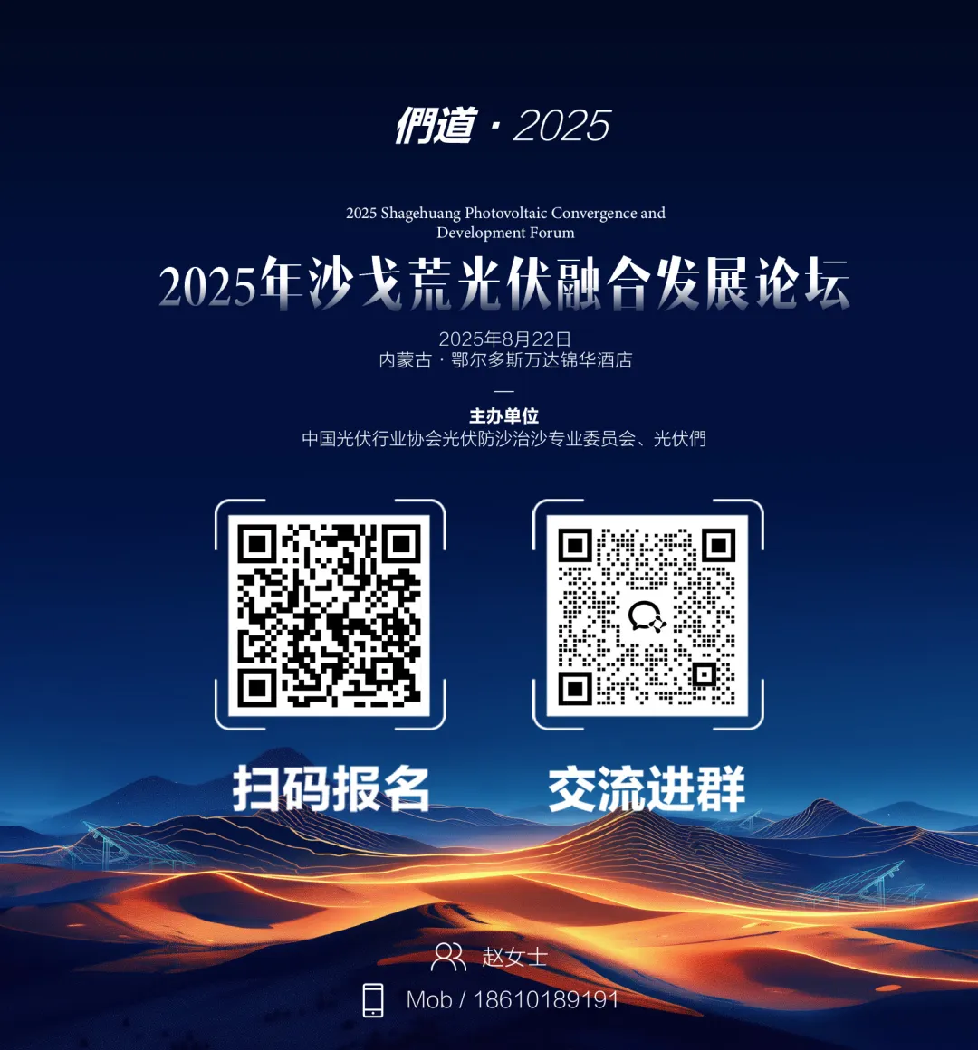 会议通知:2025年,中国新能源发展正迎来一个新的发展阶段,长远来看,拥有广阔土地资源的沙漠、戈壁、荒漠等场景仍然是集中式风、光项目的主阵地。2025年沙戈荒光伏融合发展论坛将于2025年8月22日在内蒙古鄂尔多斯举办,会议将就沙戈荒新能源基地的发展政策、成本与经济性、关键技术探讨、设备选型等话题展开探讨,助力我国双碳目标的顺利实现,推动新能源与生态协同发展。